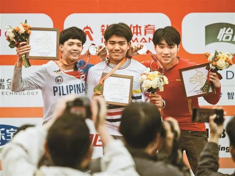 冼嘉朗(右一)为中国队捧回一枚铜牌