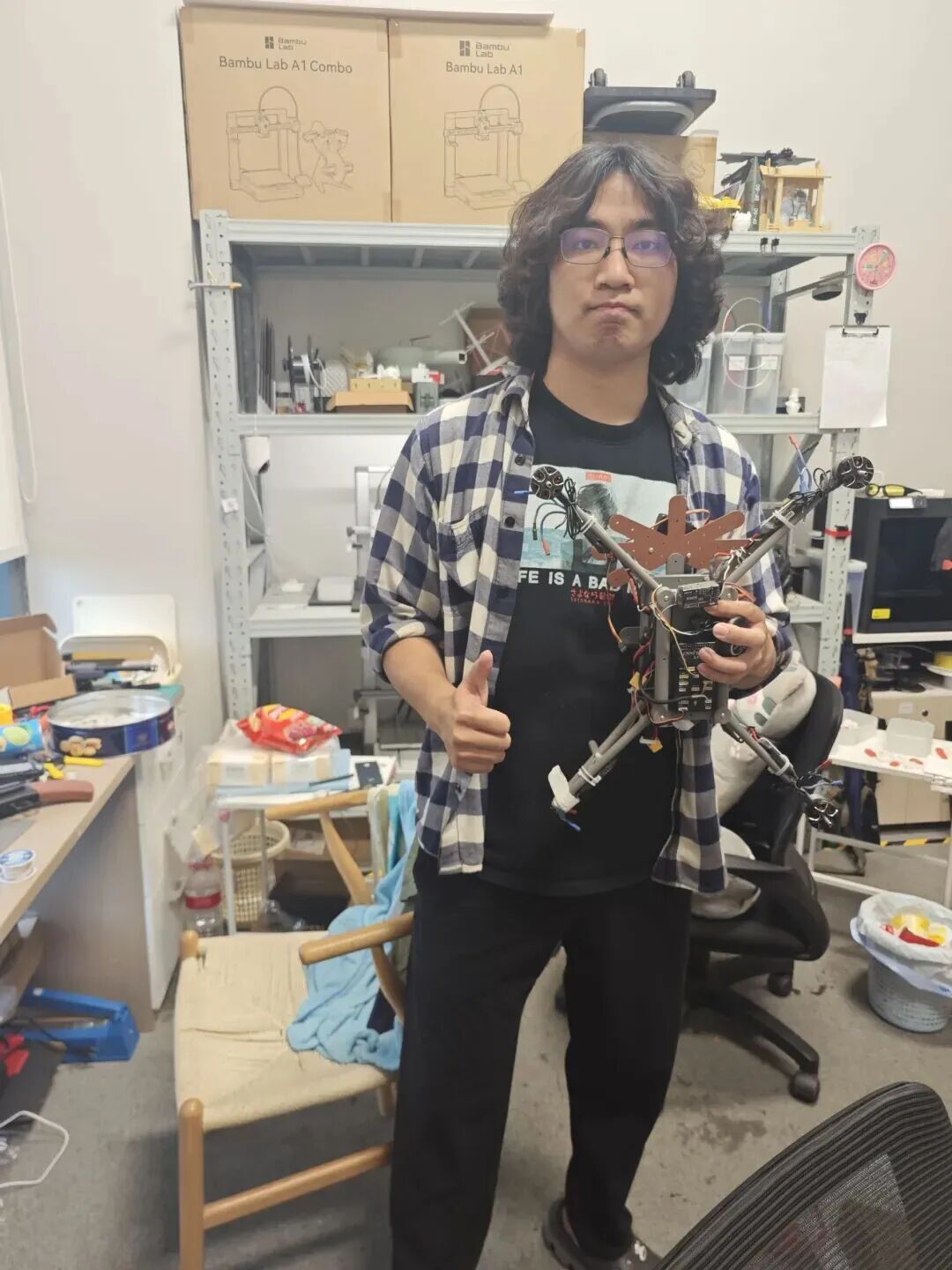 后来,在学校开设的试创课程中,吴奕凡把想法告诉了专业主任、低空智能工程系冯平教授。冯平不仅鼓励他“有想法就去做”,还提供了技术支持。
