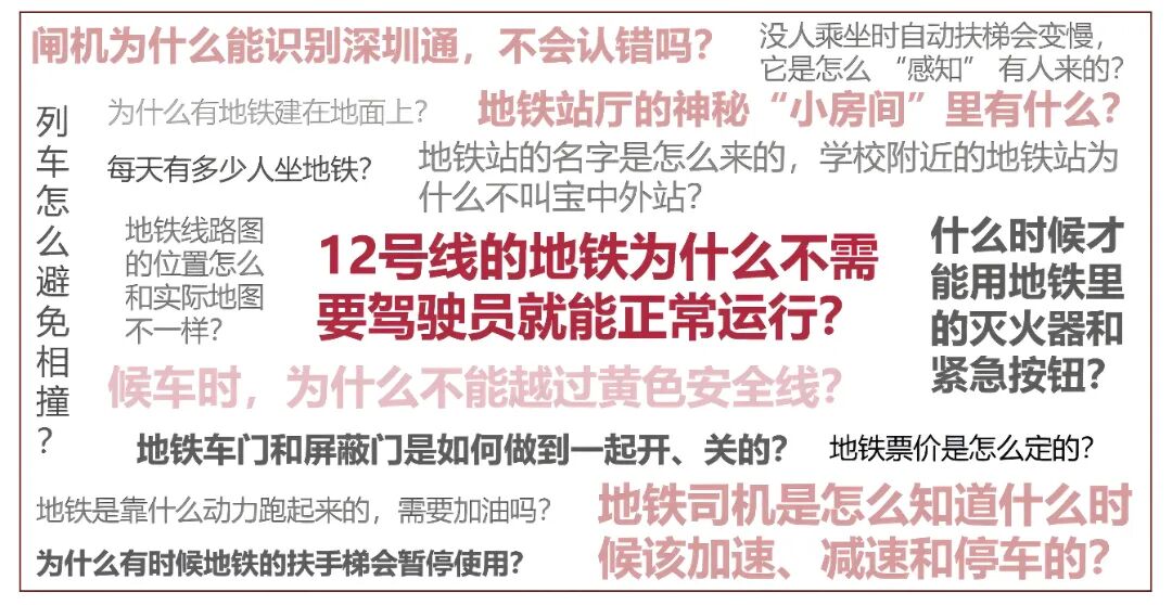 “为什么地铁关门时会有‘滴滴’声?”“如果东西掉下轨道,该怎么办?”“无人驾驶的地铁是怎么把我安全送到学校?”“列车停靠时,为什么总能对准屏蔽门?”