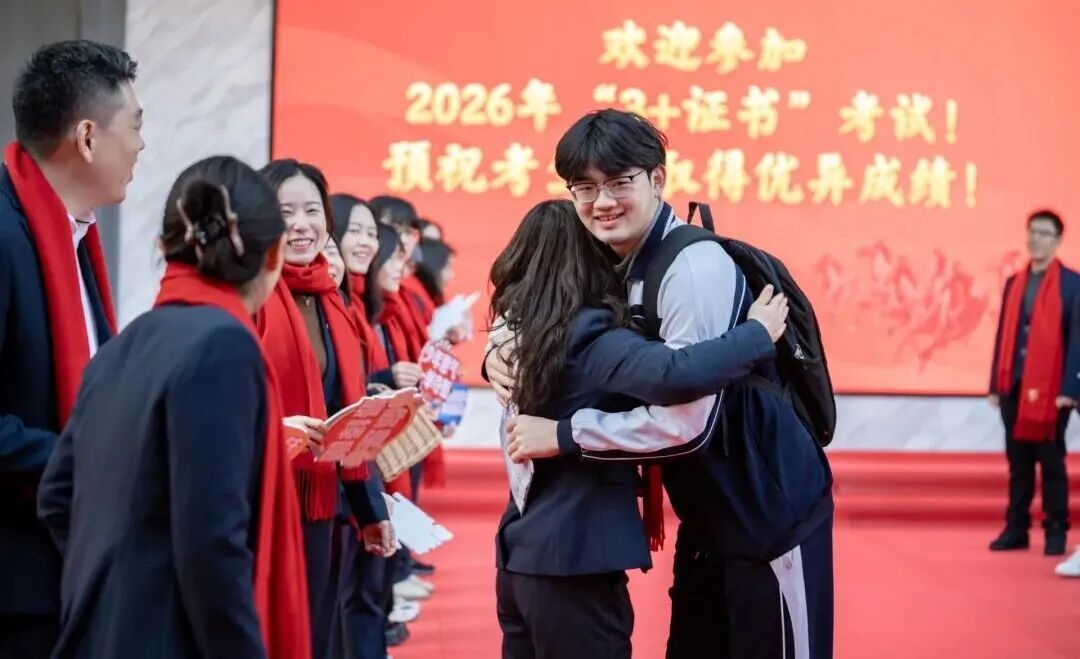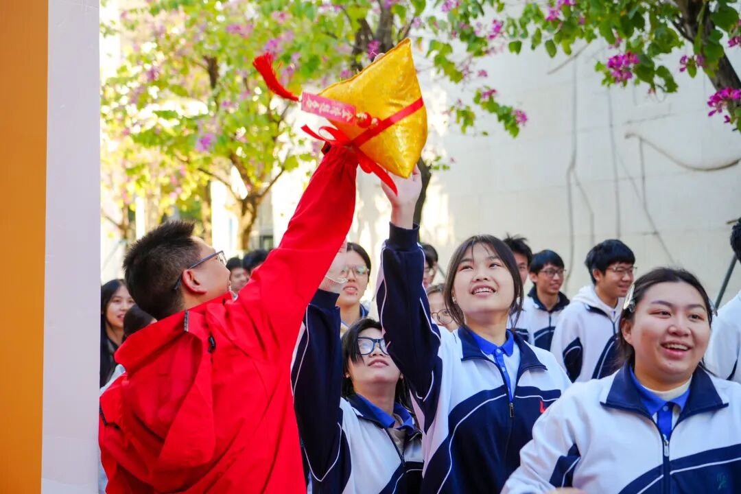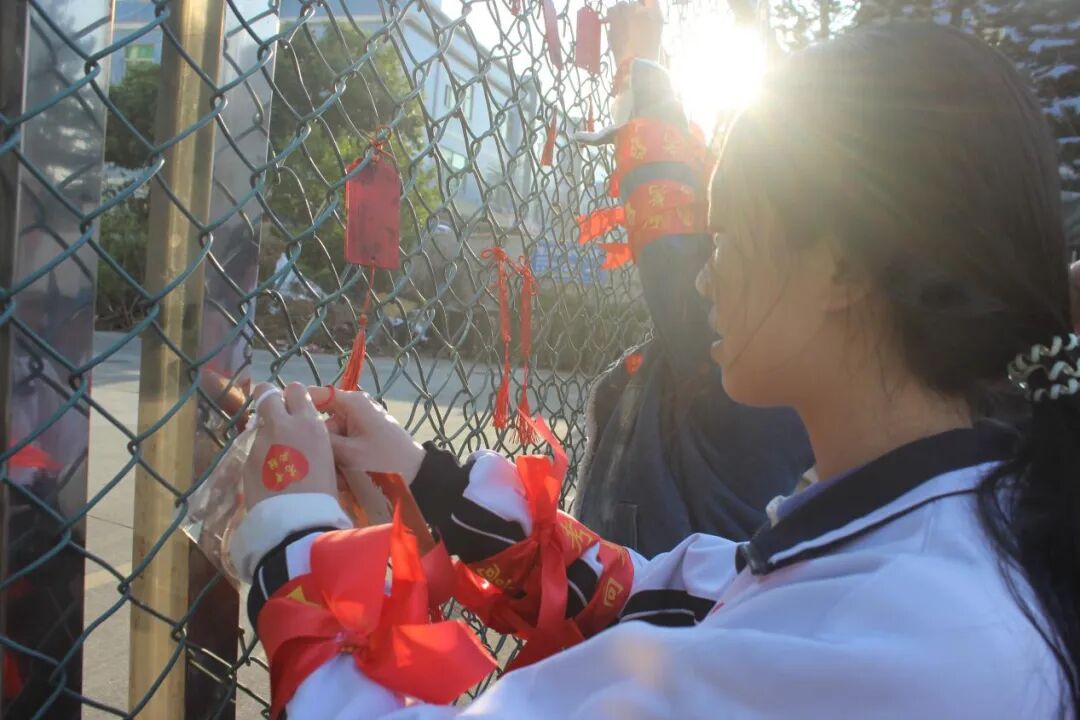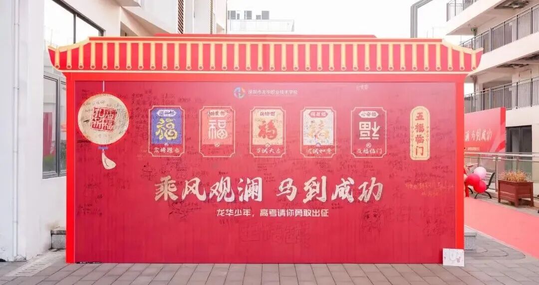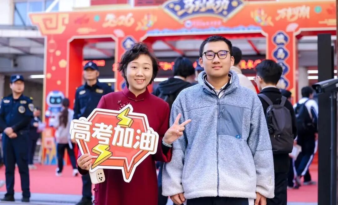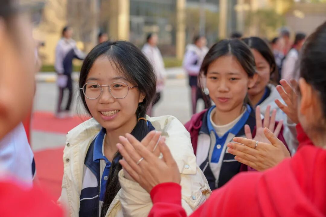 ▲“这一掌,祝你笔下生风!”开考前,华强职业技术学校的师生以击掌传递祝福
