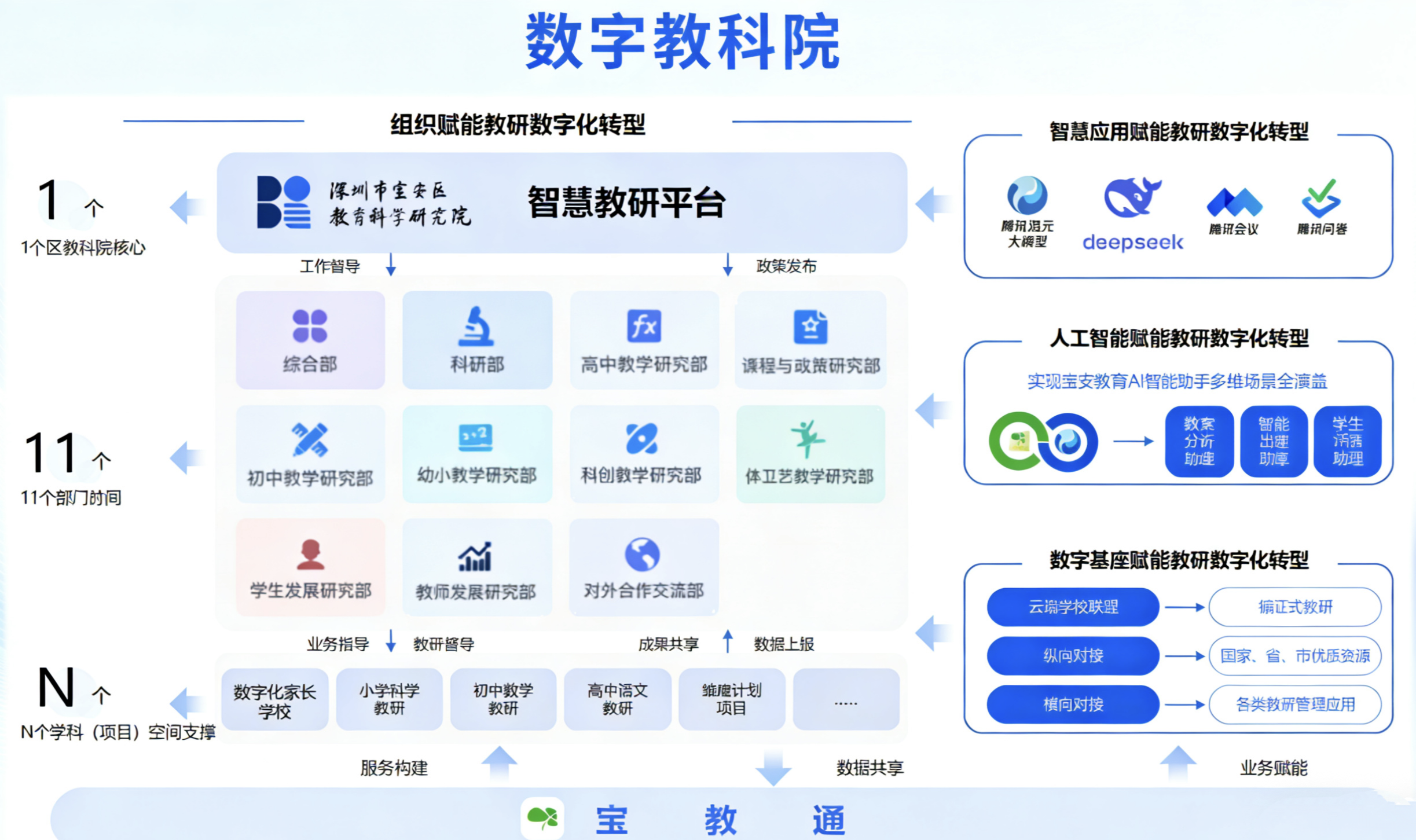 宝安区“数字教科院”构建“1+11+N”研训教一体化智慧教研体系。