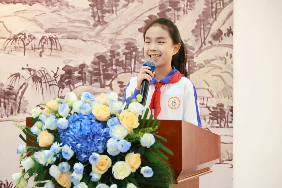艺术特长生代表崛起诚信实验学校周梓涵同学生动地介绍了崛起诚信实验学校丰富多彩的艺术课程与活动,分享了她在学校艺术滋养下成长的故事。她认为,这份艺术滋养源于崛起教育集团办学三十年的深厚底蕴。稚嫩的声音、自信的风采、充满感染力的表达,正是崛起教育集团艺术教育成果的最生动的呈现。