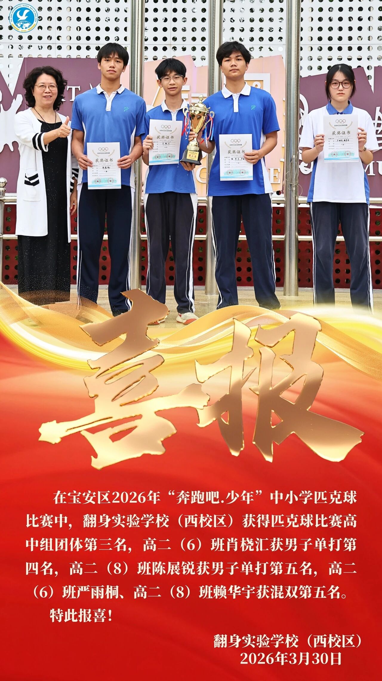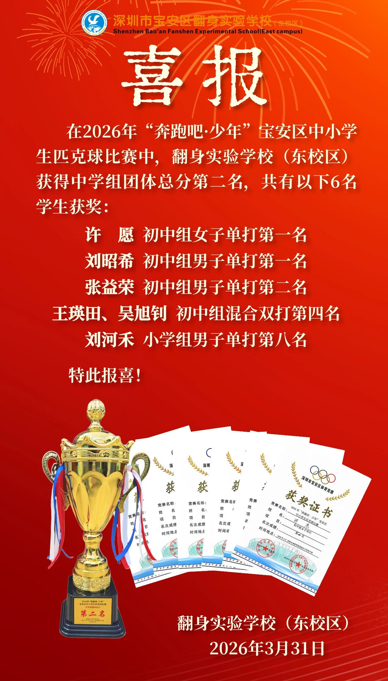 宝安区2026年“奔跑吧·少年”中小学匹克球比赛获奖