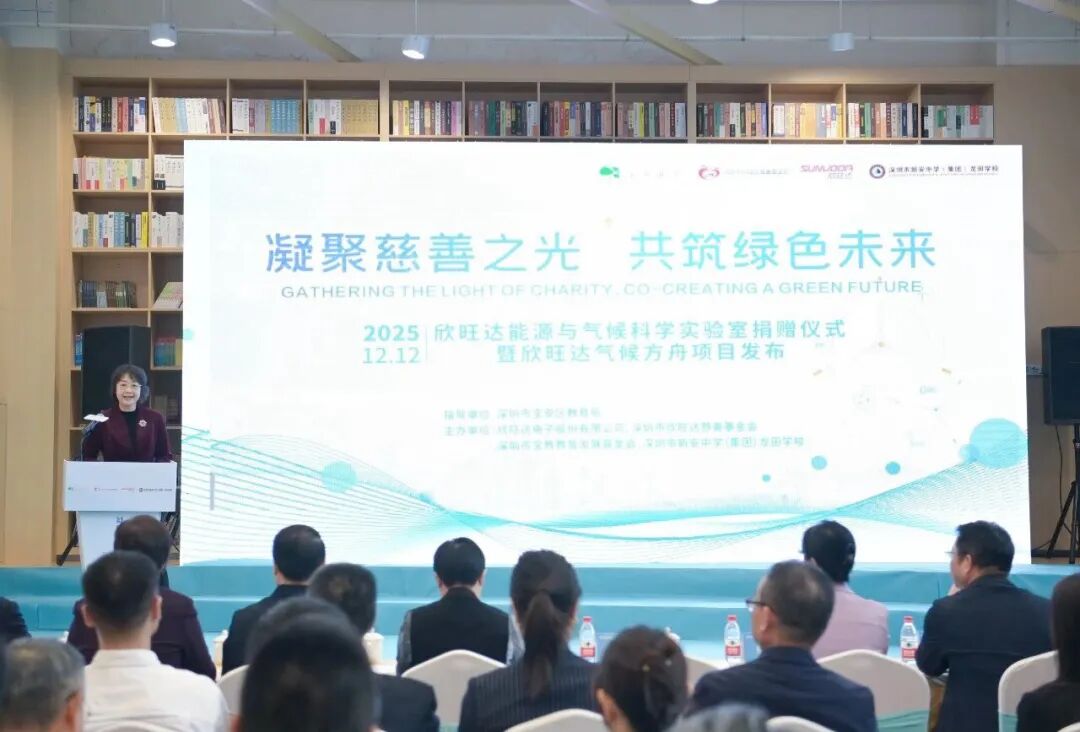 王曦首先向参加此次活动的领导嘉宾表示欢迎,并向长期以来关心、支持宝安教育事业发展社会各界的爱心企业与单位致以崇高的敬意。她表示,公益慈善作为社会文明进步的重要标志,始终是赋能教育发展、培育时代新人的重要力量。深圳市在中小学推行"每周半天计划",推动每所公办中小学建设"一校一馆"并向外校师生开放,此次欣旺达向新安中学(集团)龙田学校捐赠“欣旺达能源与气候科学实验室”,既是企业公益精神的生动体现,更是宝安深化科学教育、推动产教融合、践行绿色发展理念的扎实行动,为服务国家“双碳”战略需求提供了校企合作、产教协同育人的案例。希望龙田学校和欣旺达通过合作,深化“一校一馆”课程开发,服务区域更多师生,更将其打造成公益慈善项目进校园的“宝安样板”。