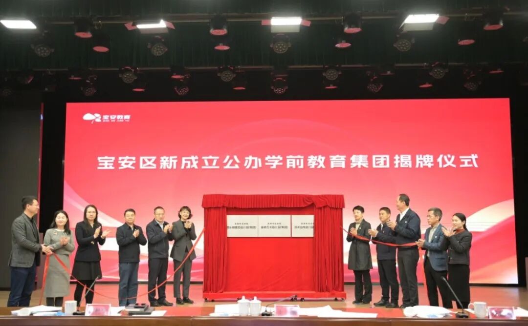会上,还举行了新成立公办学前教育集团揭牌仪式。西乡桃源居幼儿园(集团)、沙井壆岗幼儿园(集团)、新桥万丰幼儿园(集团) 正式揭牌成立,标志着宝安区在拓展优质学前教育资源、深化集团化办学方面迈出新步伐,为进一步提升学前教育普及普惠优质发展水平注入新动力。