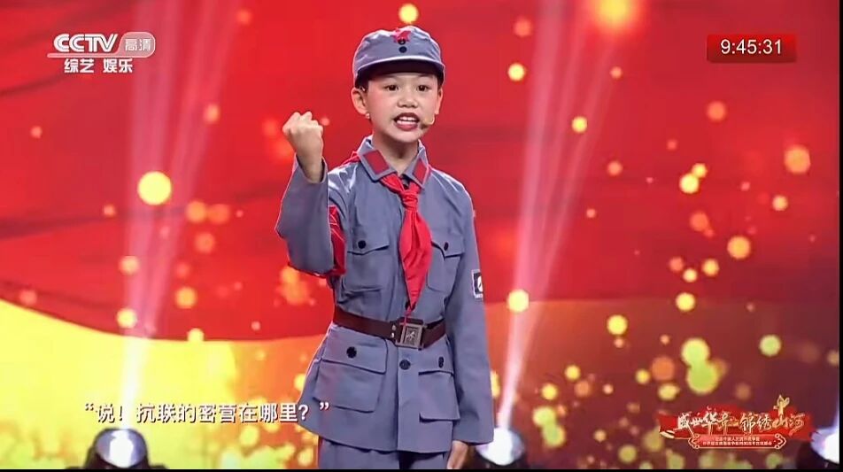 松岗第二小学的陈远睿登上央视舞台,深情朗诵《致敬抗日英雄赵一曼的故事》,以真挚饱满的情感与稳健大气的台风,征服了全国观众。