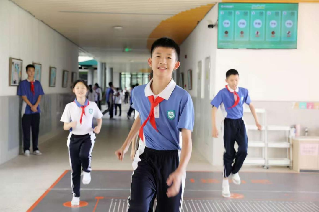 “每天综合性体育活动两小时”怎么保证?宝安中学(集团)海天学校用“碎片化运动·系统性赋能”巧破难题。学校严格要求教学不拖堂,下课铃响,课间微运动提示音同步响起,学生即刻起身活动!
