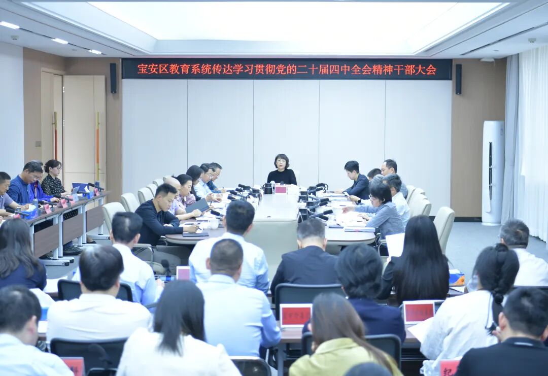 11月3日,宝安区教育系统召开传达学习贯彻党的二十届四中全会精神干部大会,深入学习贯彻习近平总书记在党的二十届四中全会上的重要讲话和全会精神,以及《中共中央关于制定国民经济和社会发展第十五个五年规划的建议》(以下简称《建议》),切实把思想和行动统一到党中央决策部署上来,以更高站位、更大力度、更实举措谋划好、推进好宝安教育“十五五”时期改革发展,推动教育强区建设实现新跨越,为区域经济社会高质量发展提供坚实支撑。