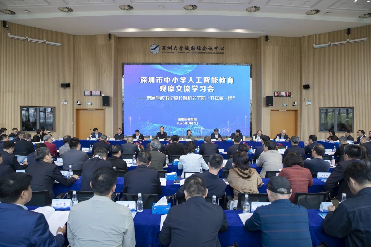 3月7日,深圳推进中小学校人工智能教育观摩交流学习会暨市教育局直属学校书记校长机关干部开年第一课举行,旨在推动全市教育系统师生干部更新理念、提升数智素养,为深圳加快建设教育人工智能先锋城市凝聚共识、明晰路径。市教育局班子成员及机关全体干部、各区教育局局长、市局直属事业单位和直属学校班子成员,以及区属学校书记校长代表等约300人参加会议。