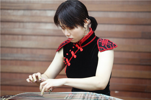 古筝社团的学生代表与项嘉微小姐姐现场合奏,