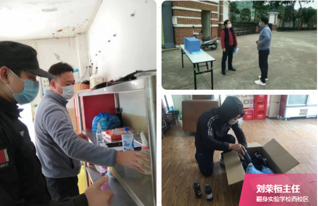 刘荣桓,翻身实验学校西校区安全处主任兼高中部德育处主任,春节返回老家的刘主任,主动放弃休假,大年初二就自驾返回深圳,迅速投入到防疫工作中。学校在以林良浩董事长为组长、李晶校长为副组长的学校防疫指挥组的领导下,刘荣桓主任带头积极落实各项措施,各项工作一肩挑。