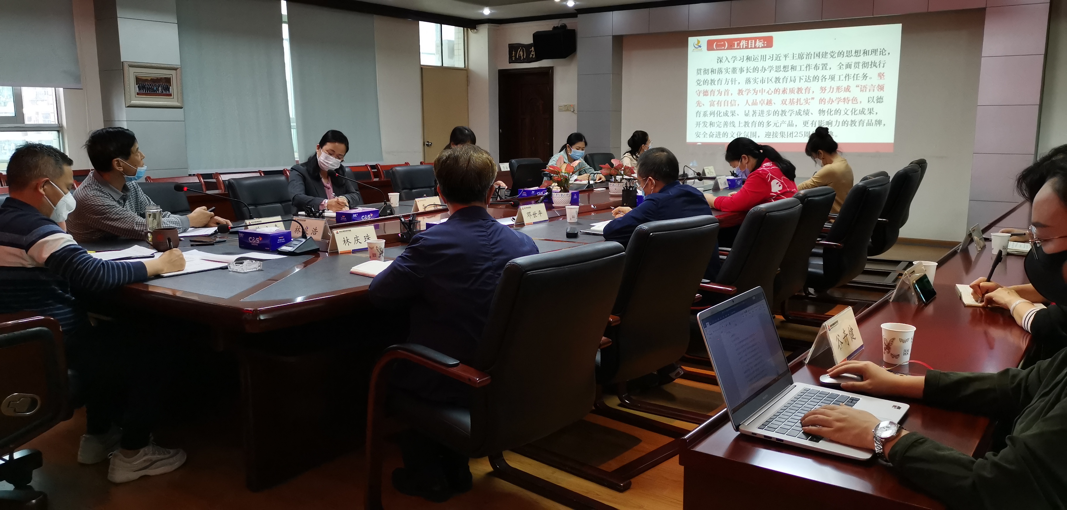 曾总的《拉网收官,扬旗迎庆》主题讲话中,主要以深入学习和运用习近平主席治国建党的思想和理论,贯彻和落实林良浩董事长的办学思想和工作布置,全面贯彻执行党的教育方针,落实市区教育局下达的各项工作任务。